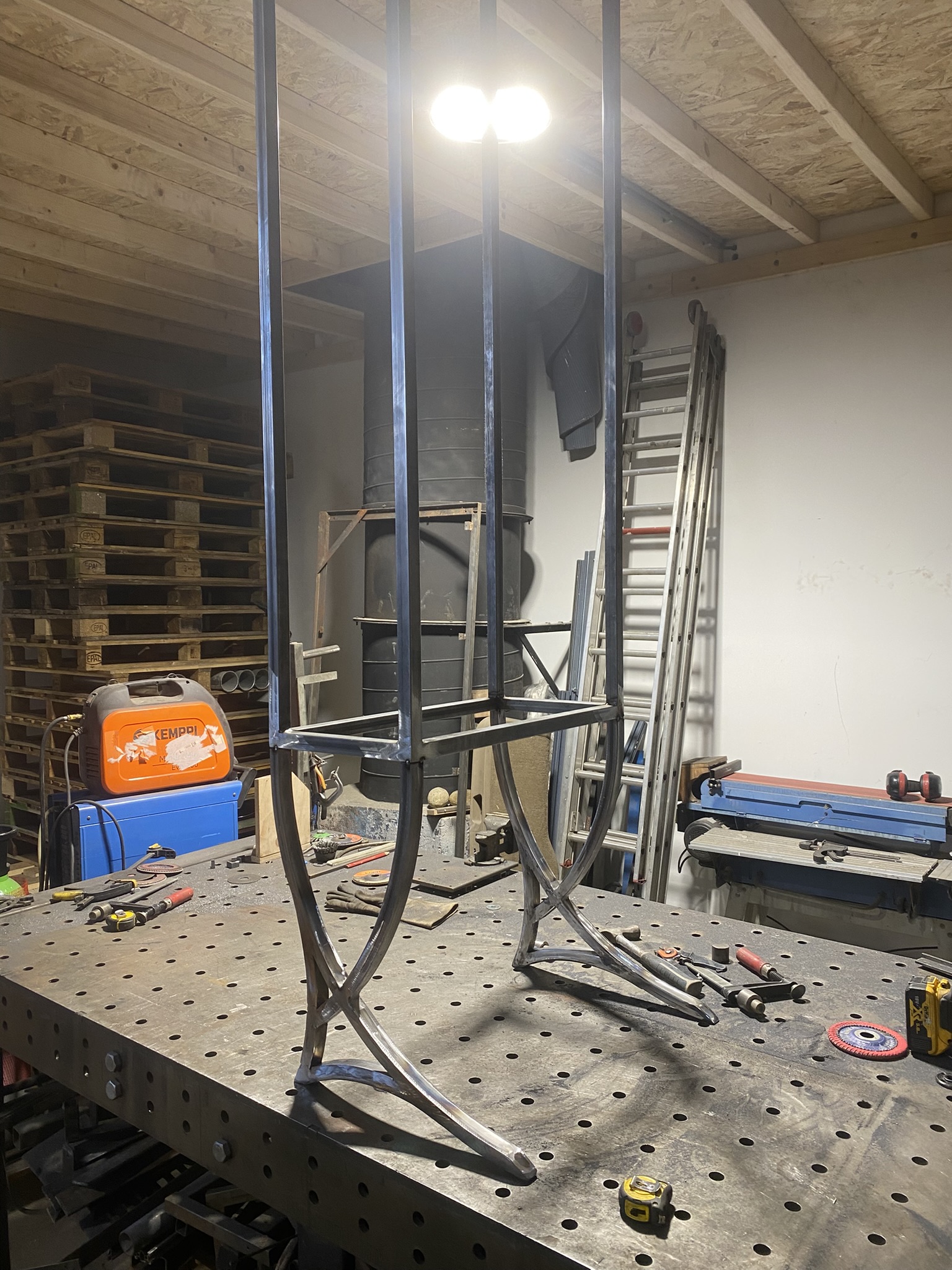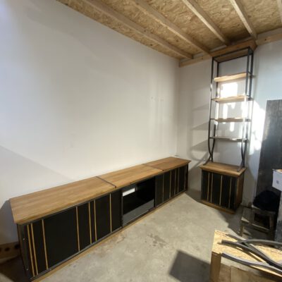 De stijl, een moderne vorm van Klassiek. Door het gebruik van een kroonlijst maar strak vormgegeven, staal in een organische vorm maakt de overgang tussen onder en bovenkast. Door de geblakerde uitvoering komt het staal oud over. Het gebruik van staal, eiken en Valchromat vormt een mooie balans tussen stoer, warm en strak.