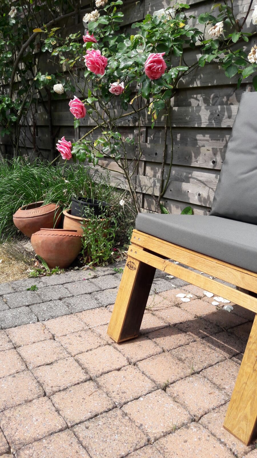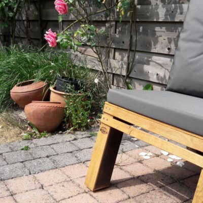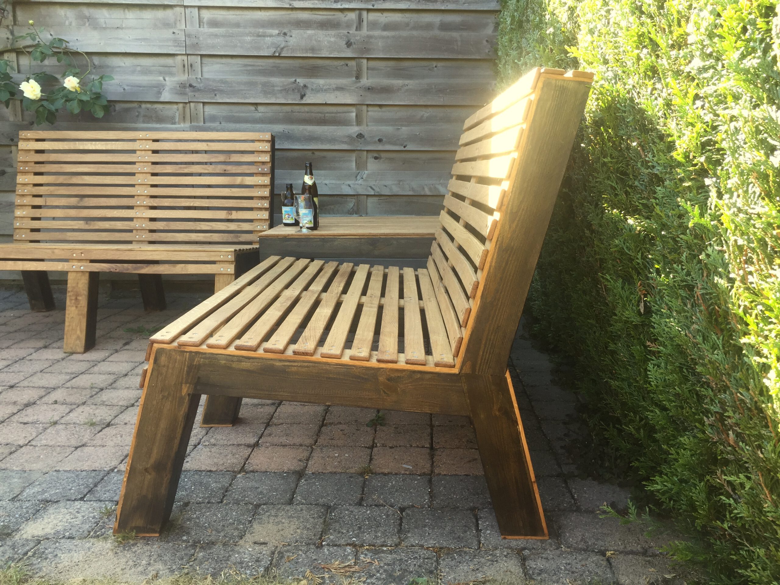 De wens was twee mooie tuinbanken en een bijzetmeubel.
